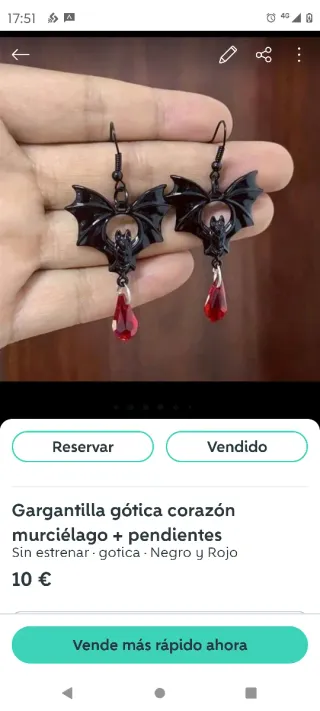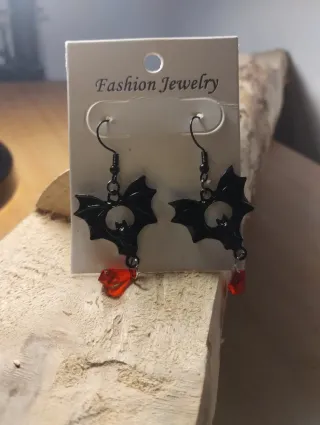 Pendientes con diseño de murciélago y detalle de cristal. - Colgante de murciélago en color negro. - Cristal en forma de gota de color rojo. Preguntar disponibilidad✅. ❎Mas articulos y accesorios en mi perfil. ❌No vinted go, no inpost usar correos o seur❌.