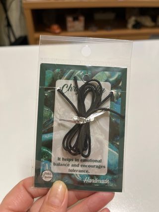 Colgante de pirita con cordón negro, diseñado para atraer dinero y éxito. - Diseño circular con piedra de pirita. - Mensaje de Hecho a mano en la tarjeta -6€ cada uno