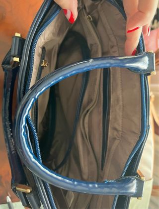 Elegante bolso de la marca Guess con un acabado metalizado. - Diseño tipo tote. - Medidas: 28cm alto 44 cm largo - Logo de Guess en relieve en la parte frontal. - Incluye charm colgante con el logo de la marca.