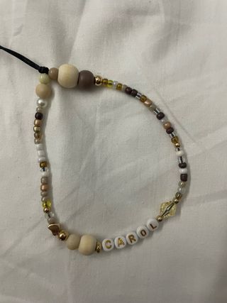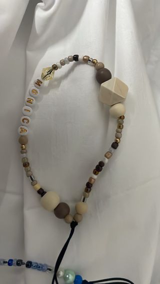 Este llavero o colgante para móvil está hecho a mano con cuentas. - Diseño con letras personalizadas - Combinación de cuentas en tonos beige y marrón. - Incluye un detalle de cuenta facetada amarilla. - El llavero es único y personalizado , son hechos amano con mucho amor y cuidado Al ser hecho por encargo se necesita un margen de tiempo para realizar el producto más el envío