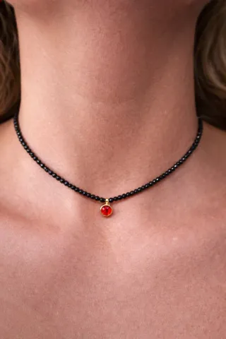 Collar de cristal negro con colgante rojo