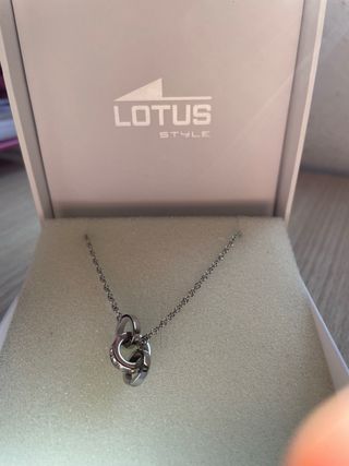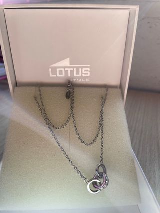 Elegante colgante de la marca Lotus, sin estrenar. - Fabricado en acero inoxidable. - Diseño con aros entrelazados y detalles brillantes.
