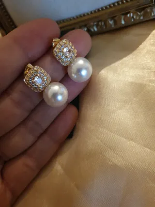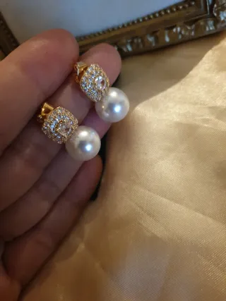 Elegantes pendientes con perlas y circonitas, con un acabado chapado en oro. - Diseño colgante con perla. - Detalle de circonita brillante en la parte superior. - Cierre de presión seguro.