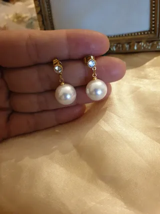 Elegantes pendientes chapados en oro con un diseño sofisticado. - Detalle de circonitas brillantes. - Perla colgante de gran tamaño. - Cierre seguro y cómodo.