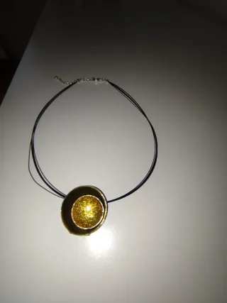 Elegante colgante con un diseño moderno. - Cadena fina. - Detalle central circular con acabado brillante.