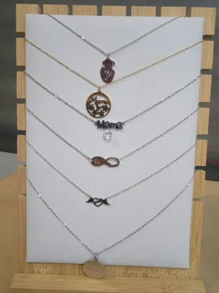 Lote de doce collares con diferentes colgantes.De acero inoxidable
