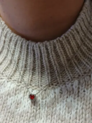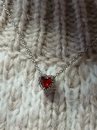 Elegante colgante de plata con un corazón rojo en el centro. El contorno del corazón está adornado con pequeñas piedras brillantes. Sello 925. Tambien lo tengo con corazon azul. 24 cm. - Diseño de corazón. - Cadena de plata. - Detalle de piedras alrededor del corazón.