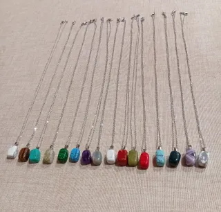 Conjunto de collares con colgantes de piedra ágata en diversos colores. - Cada collar presenta una piedra única. - Diseño elegante y versátil. - Cierre de cadena plateada.