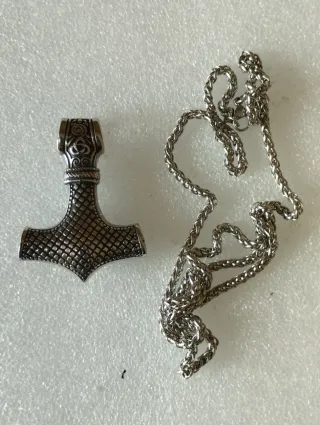 Colgante con diseño de Martillo de Thor. - Colgante de metal. - Incluye cadena de 30cm de largo.