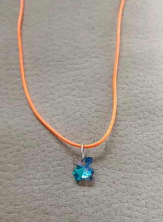 Collar con un delicado colgante en forma de oso. La cadena es de color naranja. - Colgante de cristal facetado. - Diseño de oso. - Cadena de cordón naranja.