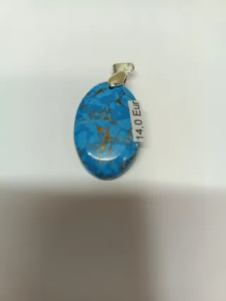 Precioso colgante de turquesa ostr Diseño ovalado - Detalle de etiqueta con precio.