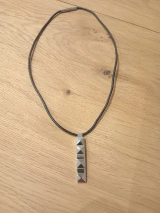 Collar con un colgante de mineral en forma de punta. El cordón es negro. - Colgante de mineral blanco. - Cordón negro. - No se a usado nunca - Es de una tienda local