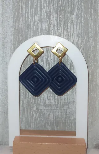 Elegantes pendientes con un diseño geométrico. - Colgante cuadrado con textura. - Detalle superior en forma de rombo dorado.