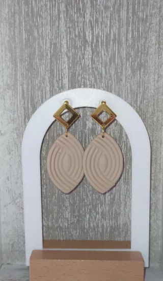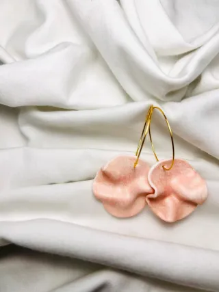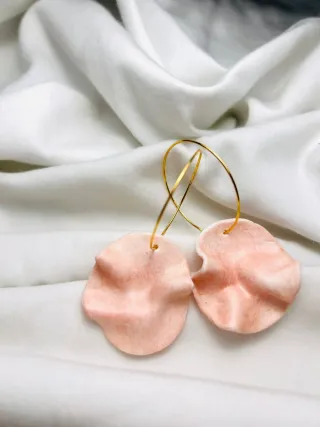 Elegantes pendientes con un diseño delicado y un toque de color. - Aro dorado. - Colgante con forma irregular y textura. - Acabado en tono rosa pálido.