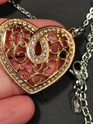 Elegante colgante con forma de corazón de la marca Lotus. - Diseño calado con detalles en circonitas. - Cadena de acero con baño de oro. - Cierre ajustable.