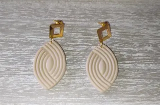 Elegantes pendientes con un diseño único. - Colgante con forma de lágrima texturizada. - Detalle superior geométrico en dorado.
