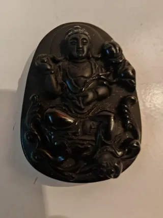 Este colgante presenta una figura detallada tallada en piedra. La piedra negra y el Buda trasmiten protección y poder de transformación. - Diseño de Buda. - Material: Piedra. - Color: Negro.