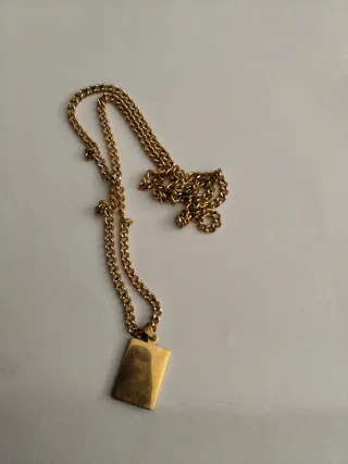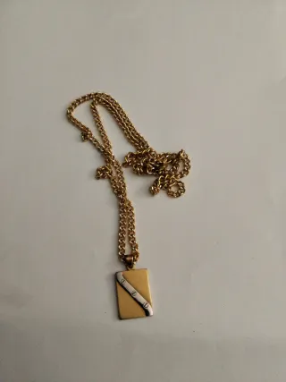 Elegante collar con un colgante rectangular de diseño moderno. La cadena es de eslabones finos y el colgante presenta una combinación de acabados. - Colgante rectangular con diseño bicolor. - Cadena de eslabones dorados.