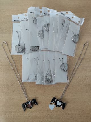 Conjunto de pulseras y collares con detalles en plateado. - Diseños variados con cuentas. - Cierre ajustable en algunas piezas. - Incluye colgantes con motivos. - Estilo moderno y llamativo.