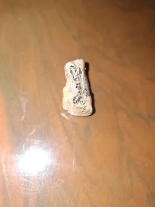 Pieza única de roca con incrustaciones de lo que parecen ser pepitas de oro. - Textura natural. - Tonos beige y dorados.