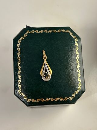 Elegante colgante de oro de 18kt y 1 zafiro. Pesa 0,59g