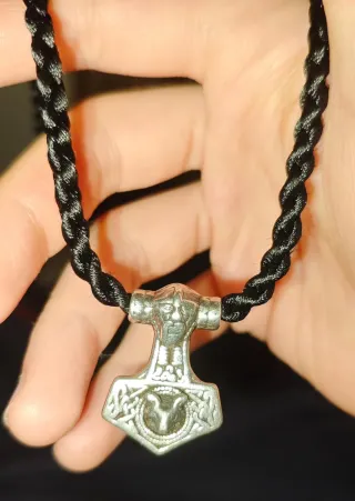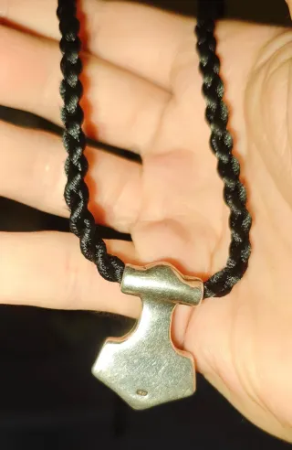 Colgante vikingo con diseño del martillo de Thor, Mjölnir con un lobo y un trisquel. Elaborado en plata de ley 925 real (ver contraste). Viene incluido un cordón trenzado de 4 cabos de nailon negro que mide 59/60cm de largo. El colgante es de plata real, pero está hueco por dentro para mayor comodidad. - Diseño detallado del martillo de Thor. - Fabricado en plata de ley 925.