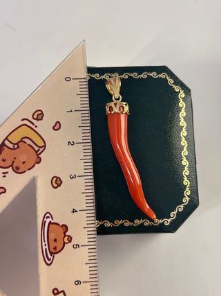 Bonito colgante con forma de cuerno de la suerte, elaborado en coral y oro de 18kt