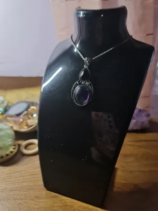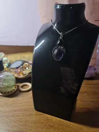 Elegante colgante con piedra de fluorita morada y detalles en plata 925. -NO INCLUYE CADENA - Diseño con dos piedras de fluorita. - Piedra principal de fluorita morada.