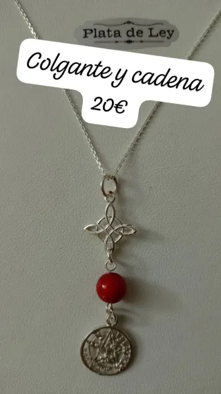Colgante de plata con diseño de nudo celta y piedra. Precio unidad - Detalle de nudo celta. - Cuenta con una piedra central. - Colgante con disco grabado.