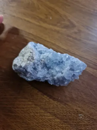 Hermosa piedra de celestina con formaciones cristalinas. - Color azul pálido y toques beige. - Textura rugosa y natural.