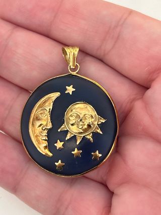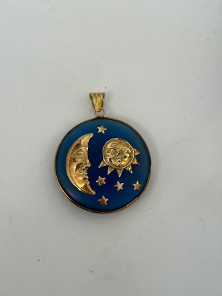 Colgante de cristal azul y oro amarillo de 18kt. Tal cual se ve en la foto
