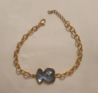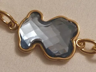 Elegante pulsera de la marca Tous con un diseño delicado. - Cadena de eslabones dorados. - Colgante central con cristal facetado en tono azul. - Cierre de mosquetón.
