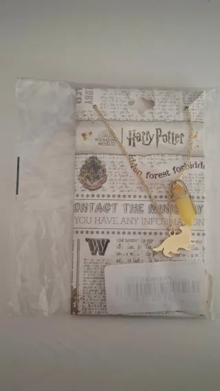Collar con temática de Harry Potter, perteneciente a la casa Hufflepuff. El colgante tiene un diseño inspirado en la temática. - Cadena dorada. - Colgante con forma de animal y piedra amarilla.