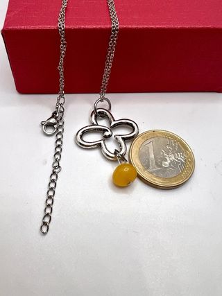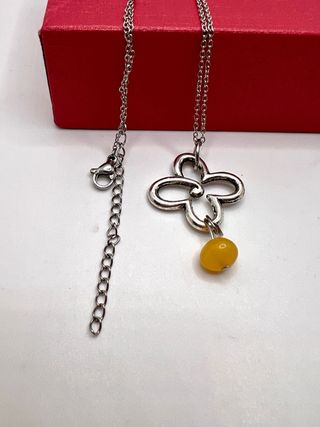 Elegante colgante acero inoxidable con forma de flor y un detalle de mineral.La cadena es de acero inoxidable. Varios modelos: 1-Ámbar 2-Ojo turco cristal 3-Cuarzo Rosa 4-Amatista Precio por unidad .