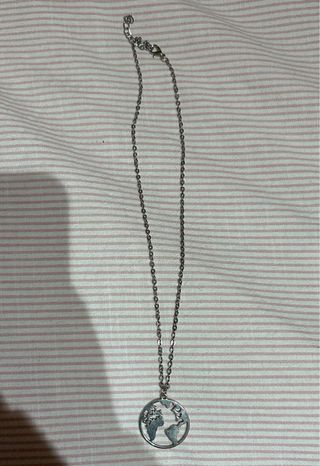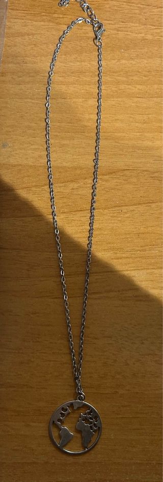 Collar con un delicado colgante en forma de globo terráqueo. - Diseño calado del mapa del mundo. - Cadena fina y elegante.