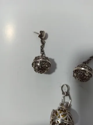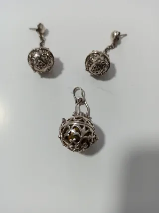 Conjunto de joyería de plata 925 que incluye pendientes y un colgante.llamadores de ángel - Diseño esférico con detalles. - Pendientes colgantes. - Colgante con cierre.