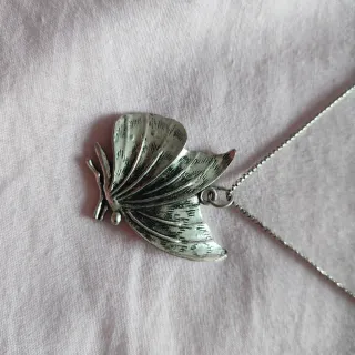 Elegante cadena de plata con un delicado colgante en forma de mariposa. - Material: Plata. - Diseño: Colgante de mariposa detallado. El colgante creo que no es plata. Largo total de cadena unos 55 cm. Estado segun fotos