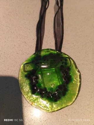 Colgante artesanal de cristal con un diseño único. Es precioso - Material: Cristal. - Colores: Verde y negro. - Incluye cinta para colgar.