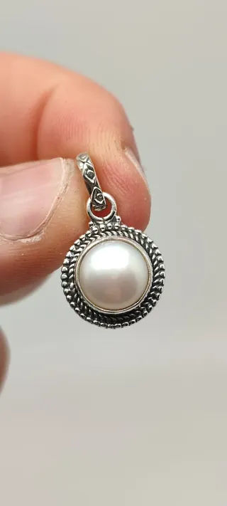 Bonito colgante de plata de ley 925 y Perla cultivada. Medida 2,4×1,4 cm con el engarce. Se entrega con bolsita para regalo.