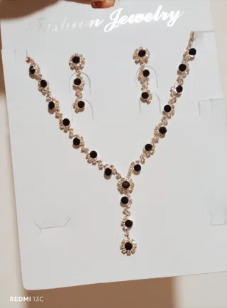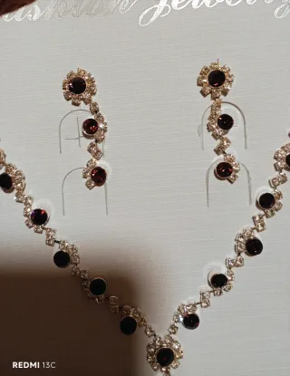 Precioso conjunto de colgante y pendientes con detalles brillantes. - Diseño elegante con piedras moradas. - Acabado plateado/dorado. - Ideal para complementar cualquier atuendo.