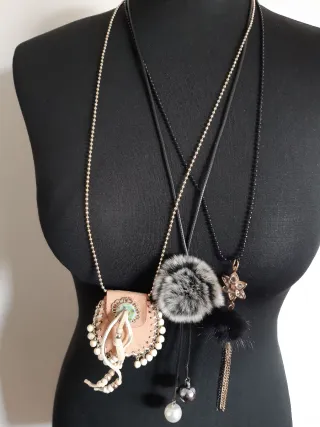 Lote de 3 Collares largos con colgantes ▪︎NUEVOS, Sin estrenar ▪︎Muy bonitos. 2 con pelo sintético Diferentes tipos de cadenas, ajustable, cuero,... tal y como se ven en las fotos ▪︎Ideales para invierno LOS 3 COLLARES POR 9 €❗ HAGO ENVÍOS 📦 📦‼ 🛍 3×2 en ropa y accesorios‼ Con la compra de 3 artículos llévate gratis el de menor precio :) Bolso fiesta, bolso Lana y piel, pendientes plata, colgante plata, gargantilla bisutería, collar metálico, collar cascada cuentas negras, colgante reloj, pañuelo BENETTON,...