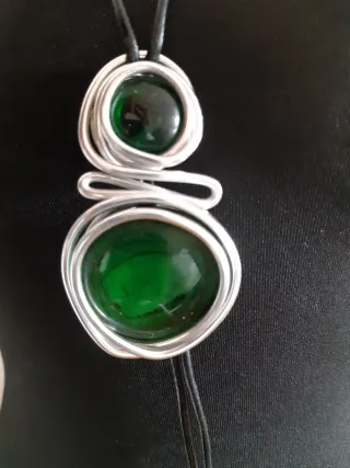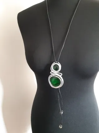 Collar largo Artesano ▪︎Colgante en Metal y Resina verde ▪︎Collar de cuero ▪︎En buen estado HAGO ENVÍOS 📦 📦‼ 🛍 3×2 en ropa y accesorios‼ Con la compra de 3 artículos llévate gratis el de menor precio :) Bolso fiesta, bolso Lana y piel, pendientes plata, colgante plata, gargantilla bisutería, collar metálico, collar cascada cuentas negras, colgante reloj, pañuelo BENETTON,...