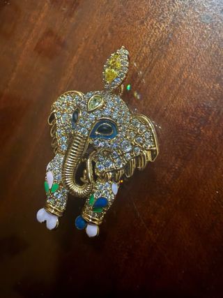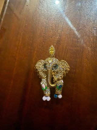 Adorno de elefante con una perla y detalles brillantes. - Diseño de elefante. - Perla central. - Detalles con circonitas.