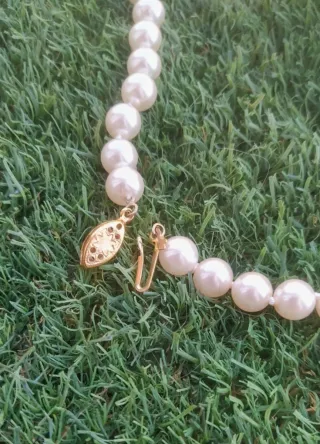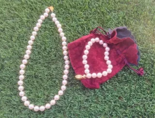 Elegante conjunto de colgante y pulsera de perlas. - Perlas de color blanco nacarado. - Cierre dorado.