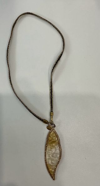 Colgante con diseño de hoja alargada. - Colgante con detalles en dorado y blanco. - Cadena fina con acabado brillante.