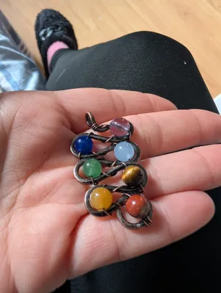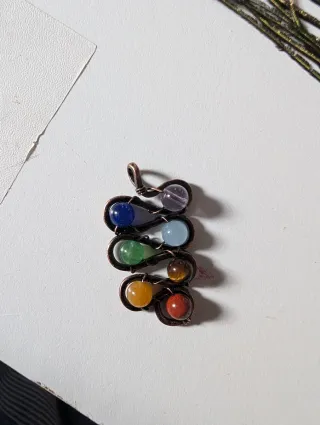 Colgante artesanal con las piedras de los 7 chakras. - Armonía y equilibrio - Diseño en espiral con alambre de cobre. - Incluye piedras como amatista, lapislázuli, aventurina, citrino, ojo de tigre y jaspe rojo. - Cada piedra representa un chakra diferente.