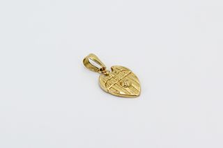 Colgante dorado con diseño de cruz. También puede usarse como pendiente. - Acabado en tono dorado. medalla colgante cadena collar cruz oro plata dorado plateado arte religioso santo virgen cristo