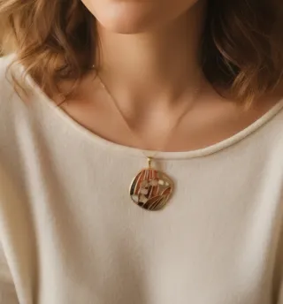 Colgante artístico chapado en oro y esmalte. ✔️ Diseño con motivos florales en tonos dorado, nacary marrones ✔️ Incluye estuche original de joyería Leiva (Playa D’Aro) ✔️ Pieza elegante, ideal para regalo o colección 📍 Entrega en mano en Madrid o envío asegurado Valorado en 80€ 💬 Precio negociable Precio: 40 €