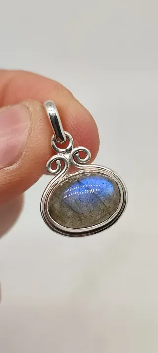 Precioso colgante de plata de ley 925 y labradorita. Medida 2,5×1,6 cm con el engarce. Se entrega con bolsita para regalo.