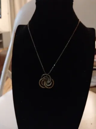 Elegante cadena con un colgante en forma de corazón. El diseño del colgante incluye la palabra Amor y dos corazones pequeños, además de un pequeño detalle de pedrería. Desconozco de qué material y marca es